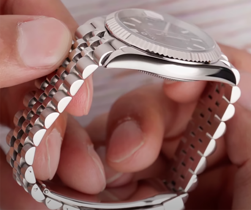 The case is 36mm with polished surfaces and a fluted/polished bezel that interacts beautifully with light. To my naked eye, the finish is clean: no noticeable rough edges. The sapphire crystal rises slightly above the bezel, adding visual depth. The crown is screw-down, but a bit small, and has the brand logo etched into it; adjusting the time/date isn’t as smooth or refined as with higher-end brands, but it functions fine.