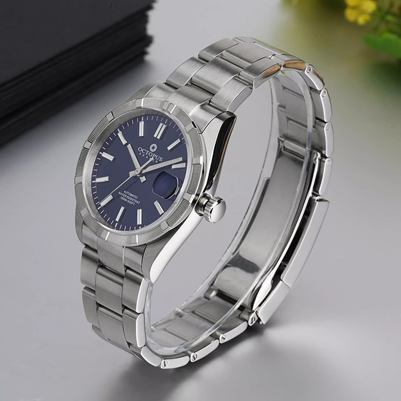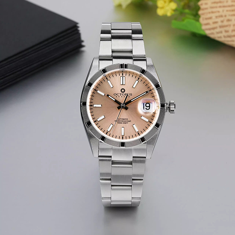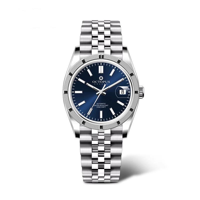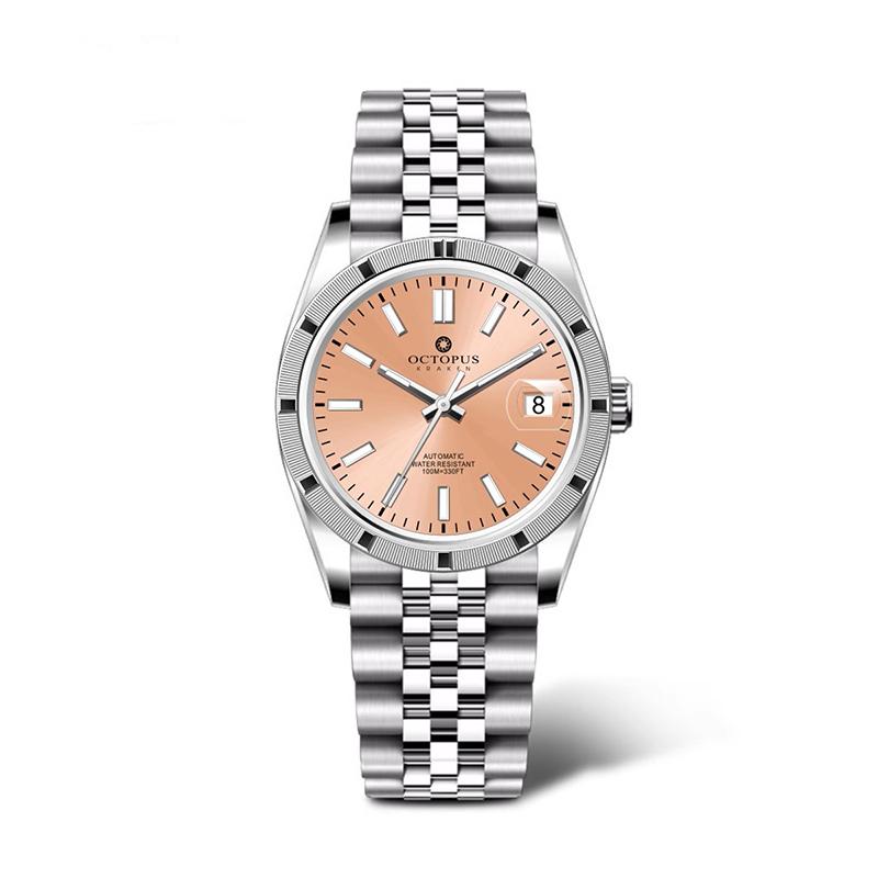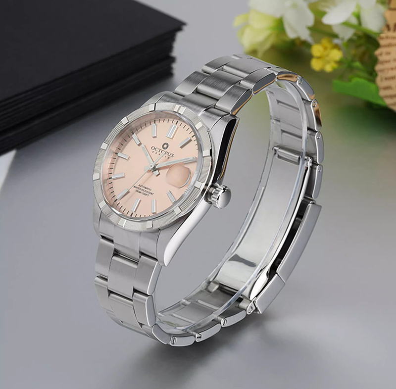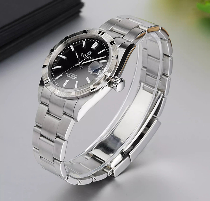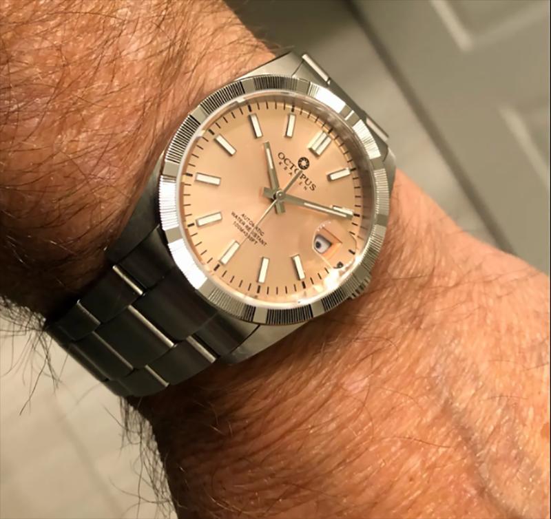 This homage is superbly finished. Its 36mm size on my 6 3/4" wrist fits perfectly in a classic dress watch fashion. The on the fly clasp is the icing on the cake.