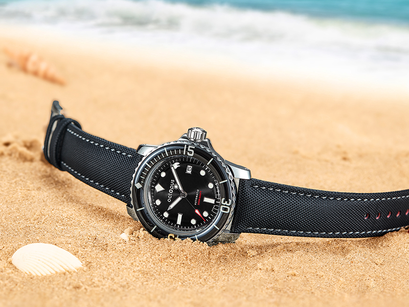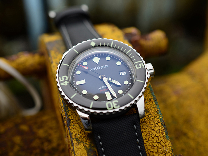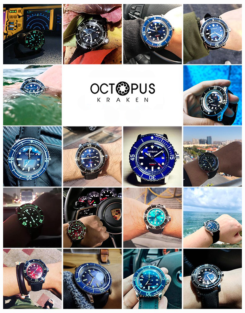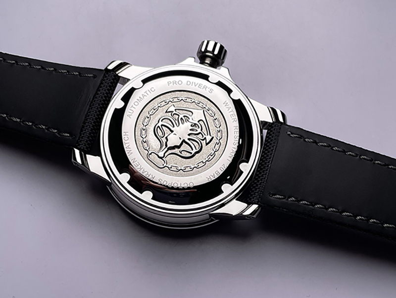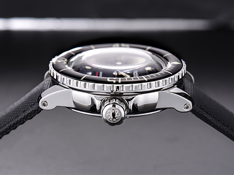 The Octopus Kraken oct001 dive watch is an homage to the classic vintage Fifty Fathoms, with a sapphire glass bezel, paired with a distinctly curved sapphire glass, mirror-polished to 316L medical-grade stainless steel, and a choice of two movements, the NH38 and the SW200.