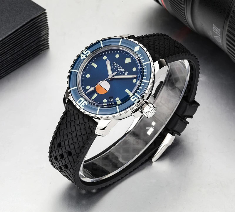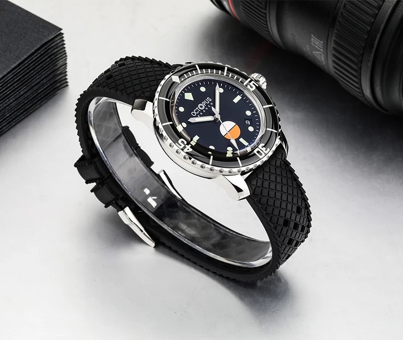 Octopus Kraken OCT020 BP 5008 Homage is a rugged and sophisticated dive watch. It homage to the iconic MilSpec design while offering modern performance. Designed for extreme durability, it features a rugged PT5000 auto movement, sapphire crystal and bezel, and a dial that uses Swiss luminescence.